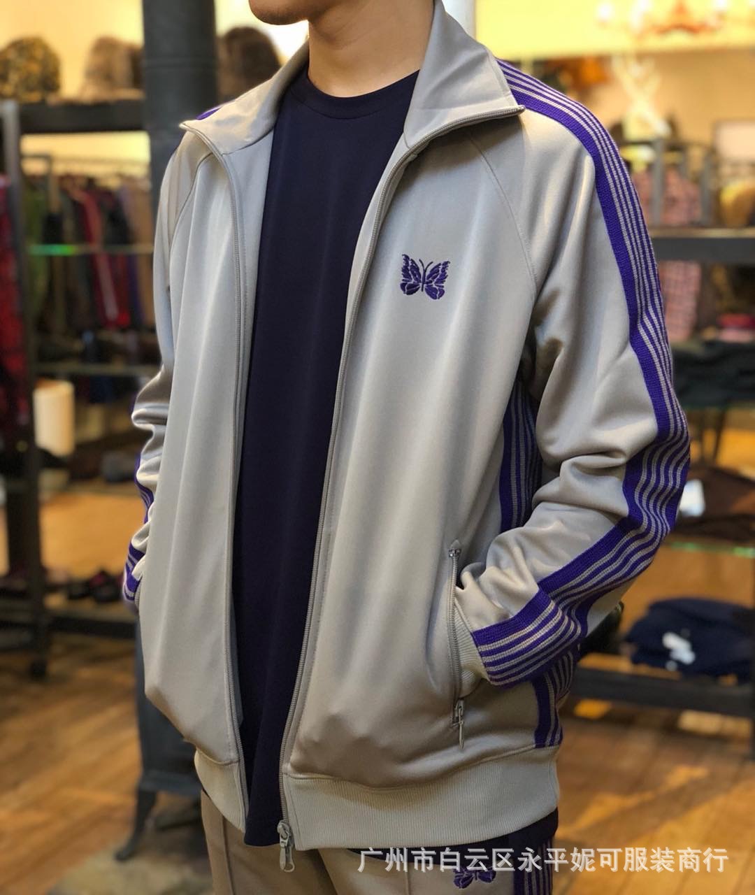 Needles track Embroidery Butterfly Zipper Sports Coat Tide Pile Retro Casual FOG Stand Color Jacket Men and Women